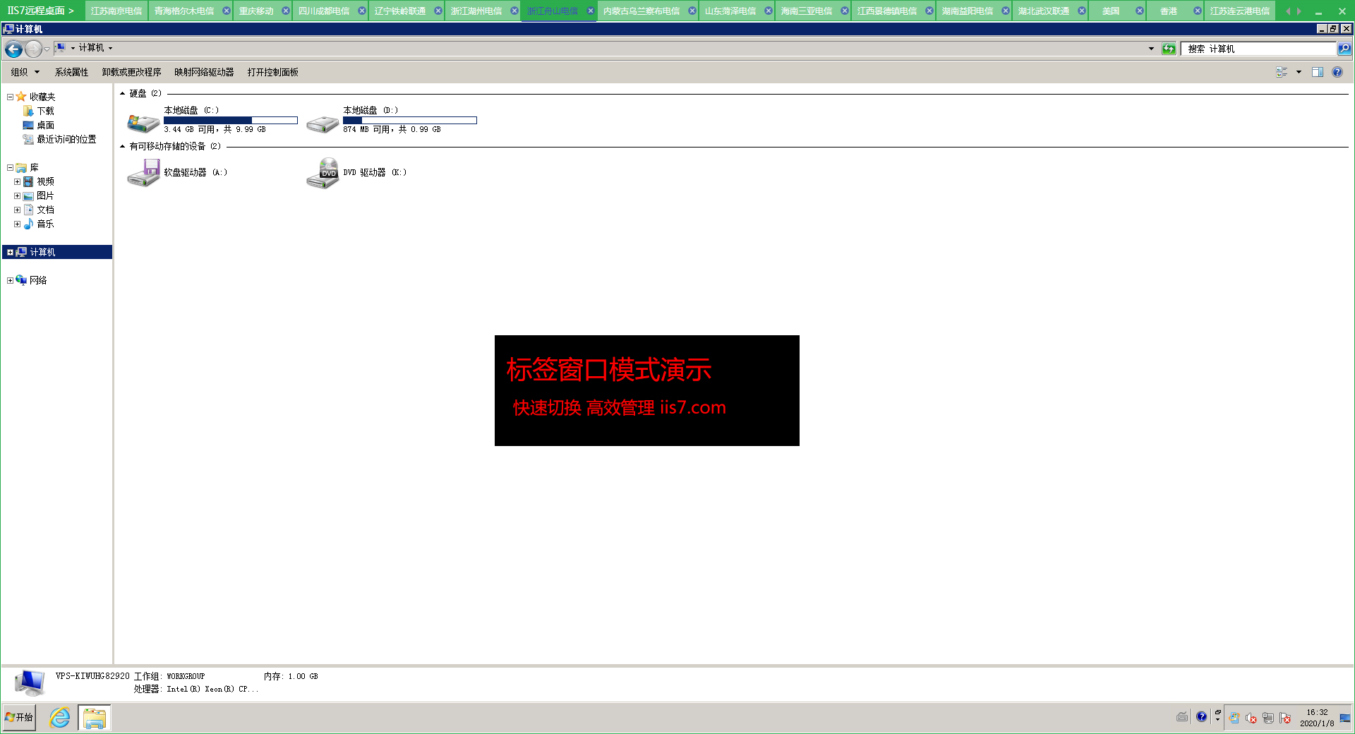 8、打開多臺(tái)服務(wù)器,下面是一個(gè)選項(xiàng)卡式窗口的例子: